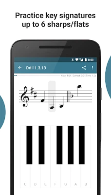 • Practice key signatures up to 6 sharps/flats in progressive key signature drills