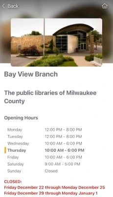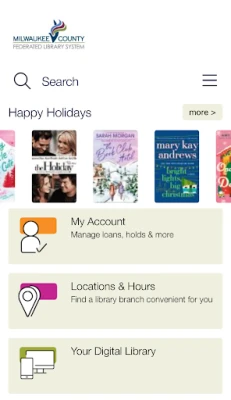 Check your library account and renew materials Search the catalog and place requests Discover new titles and see library hours and other information Link to many online resources like Libby, Hoopla and Gale Courses