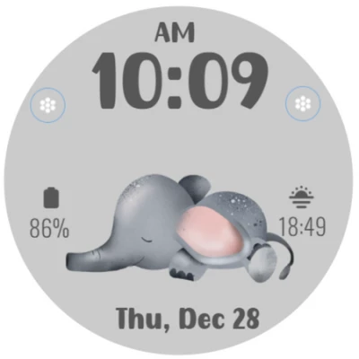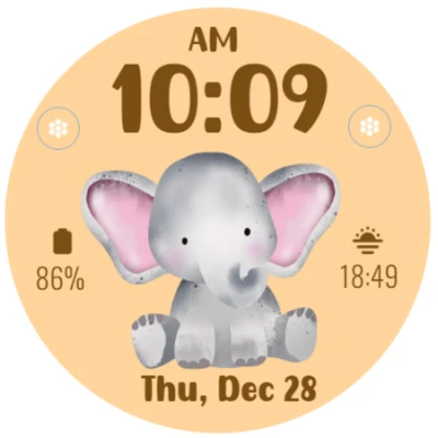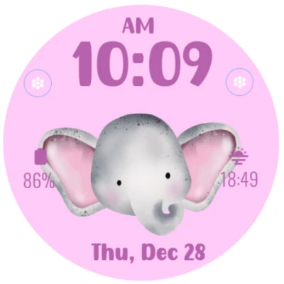 Cute Elephant Theme watchface for Wear OS.