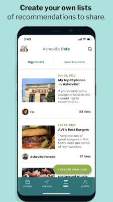 Check out the LIST tab to see recommendations of AVL’s micro-influencers who’ve got the lowdown on where to go and what to do. Do you already have a list or two of your favorite places in mind? Create a PROFILE and share your lists with family and friends.