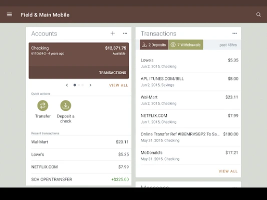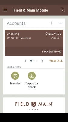 Managing your financial life should be simple and convenient. We bring modern craft banking® to you in person, online and on your favorite devices. With your iPhone®, iPad® or Android™, mobile banking is a fast, convenient way to stay on top of your account. Plus you have the convenience of using the same ID and password as your Field & Main® online banking credentials.