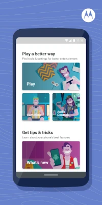 The Moto app is an engaging platform where you can find all the features that make Motorola phones easy and enjoyable to use. Inside the app, you’ll find Moto Actions, Moto Display, and other feature families that let you customize the way you interact with your device. Each time you open the Moto app, you’ll see information about the features inside so you can discover new ways to make the most out of your Moto experience.