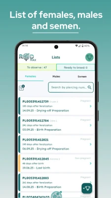 Your time is valuable, so we automate what we can. ROD automatically creates a care plan for every female you mark as inseminated – so you never miss an important stage of reproduction. Focus on what matters – the app handles the rest.