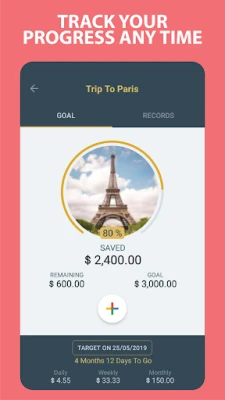 Ever dream of having a nice trip to Paris with your love, new flagship smartphone, new car, travel around the world or maybe your retirement plan? Let's make it happen with our Savings Goal tracker app.