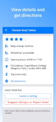 - Leave hygiene ratings which get fed back to toilet maintainers whenever possible