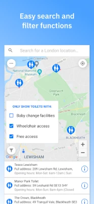 Toilets4London is free, has no ads, does not collect any user data and is actively maintained by Toilets4London's founder, not a big company, which means your feedback gets incorporated quickly.