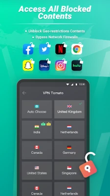 You can unblock any sites, app or games with Free VPN Tomato. Bypass government censorship and geo-restrictions to access social networks such as Facebook, Twitter, YouTube, Snapchat, PUBG, Free Fire, Twitch, etc., or any other blocked websites from anywhere! Watch TV, movies and live sports from any country no matter where you are.
