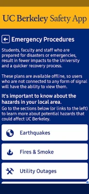 - Preparedness Resources: Access emergency resources in one convenient app to enjoy a successful experience at UC Berkeley.