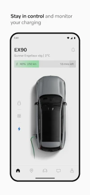 Track charge levels and electricity consumption on your Volvo full electric or plug-in hybrid.